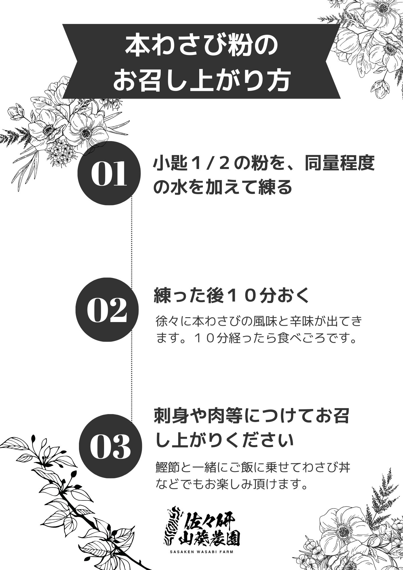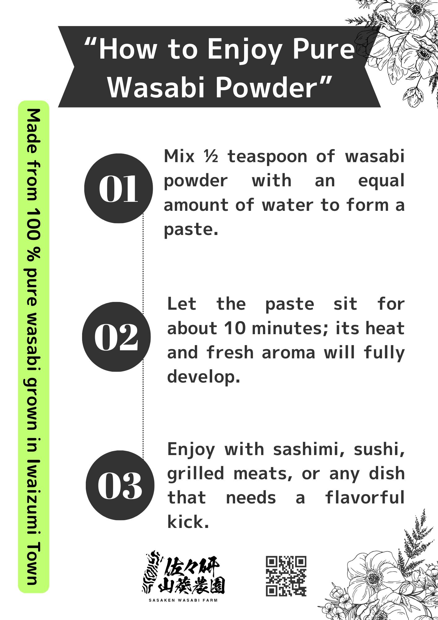 Ideal for sashimi, sushi, roast beef, or even combined with bonito flakes for a flavorful wasabi rice bowl—this versatile powder complements a wide variety of dishes.