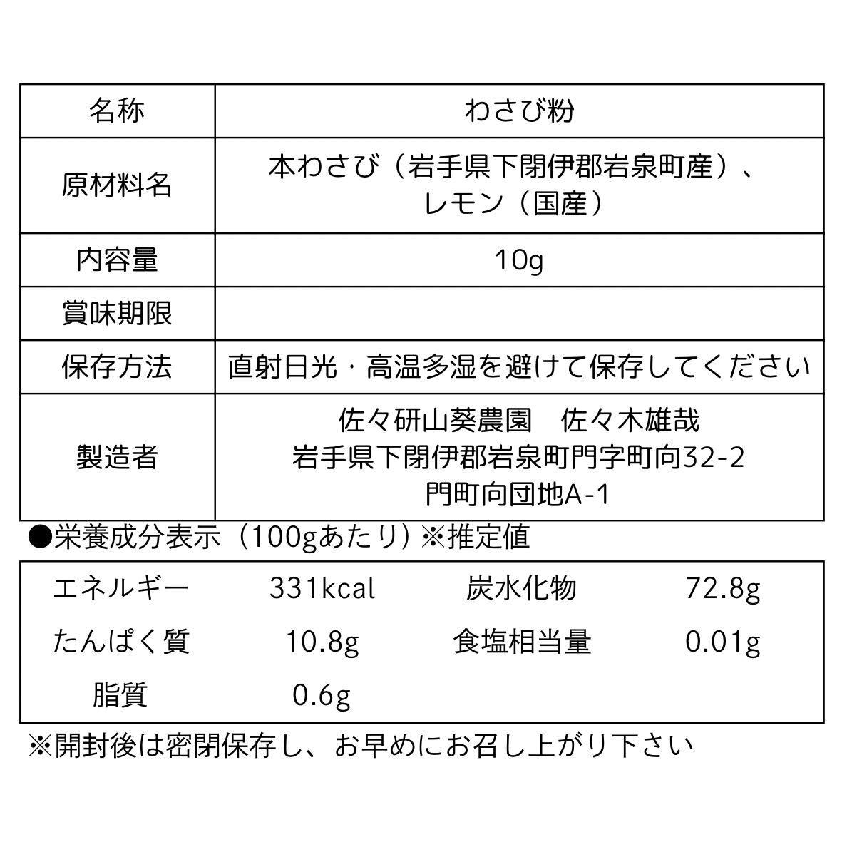 食品表示原材料名:本わさび(岩手県下閉伊郡岩泉町産)
